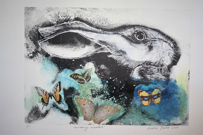 Artist:  Annelise Bowker Title:  Abundance revealed Medium: Experimental monoprint Size:  31 cm x 21 cm Price on Request Message of hope: Let us take hands and remember that in prosperity as in adversity, in the sunshine as in the dark, God is ready to keep us all the time