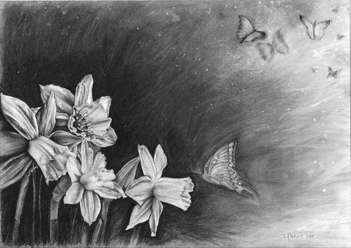 Daffodils are such happy flowers, and a symbol of spring and new life. Butterflies signify new beginnings - rebirth and transformation. I believe that this is a time of transformation into a new life, for Planet Earth and all of her inhabitants. Blessings to all