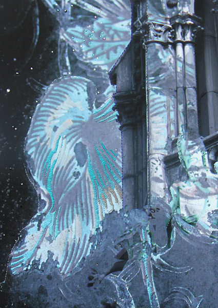 Hand-stitched silk & metallic thread embroidery and Swarovski crystals on digital print on archival paper (104 x 70cm)