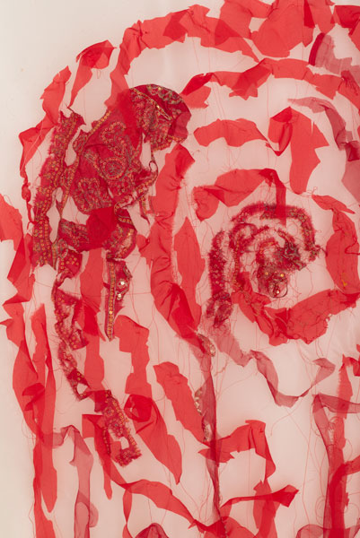 Hand embroidered with saris and viscose and silk thread on silk organza