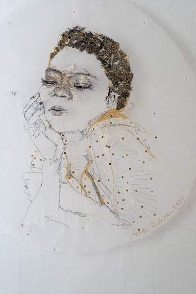 Hand-embroidered silk and metallic threads, Swarovski crystals, sequins, vintage sari, silken organza and tulle (84 x 69cm) (recto and verso)