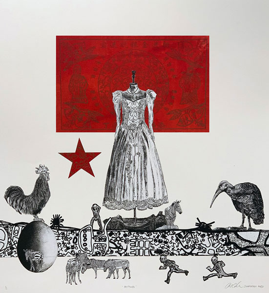 Artist:  Collin Cole and Dina Kroon (collaboration) Title:  Postponed Medium: Etching, Chine Colle Size:  65,5 x 75cm Framed Price on Request