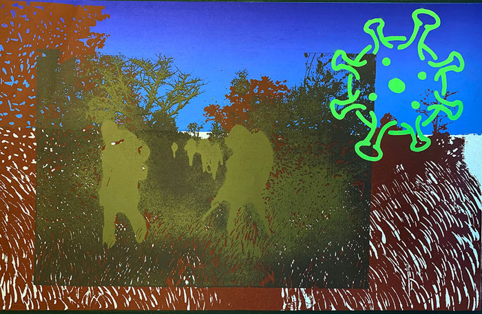 Artist:  Collin Cole and Dina Kroon (collaboration) Title:  Last Patrol Medium: Screen Print and hand colour Size:  68 x 50cm Unframed Price on Request