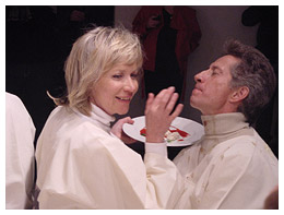 The men, namely Jacques du Preez (presenter, 'Geraas'), Henja Schaap (fashion editor, De Kat), Gerhard Greyvensteyn (researcher, 'Geraas'), Thomas Thomson (fashion designer), Simon Rademan (fashion designer dressing Miss South Africa), Prof Jonathan Jansen (Dean, Faculty of Education, UP), Thabo Leshilo (Editor, Pretoria News), Freek Swart (retired political editor of Rapport), and Henning Pieterse (writer, Hertzog Prize Winner, 2001) were fed by Helena Hettema (singer and songwriter), Patricia Glyn (presenter, SAfm), Esmeralda Bihl (presenter, 'Geraas'), Jennifer Ferguson (singer and songwriter), Sandra Prinsloo (actress), Ronel Nel (Organiser: Aardklop), Arina de Witt (singer), Lucia Burger (journalist), and Vanessa Carreira (Miss South Africa). During this ten-course dinner, the men became bloated and nauseated by the excess, while the women longed for a morsel of the opulence. Even the audience present, had nothing other than wine and dry cheese sticks