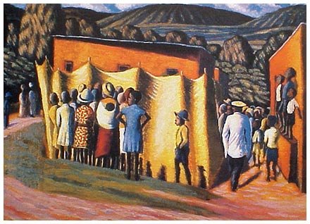 His paintings from this period evoke the vibrancy and energy of the cultural activity and tension of the townships and serve as historical records of a way of life as these areas were subsequently destroyed.