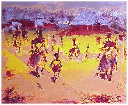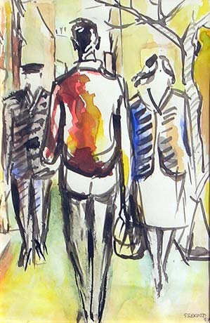In 1934, Sekoto graduated and started teaching in the Primary department of the Khaiso Secondary School near Pietersburg. He began using watercolours in his works.