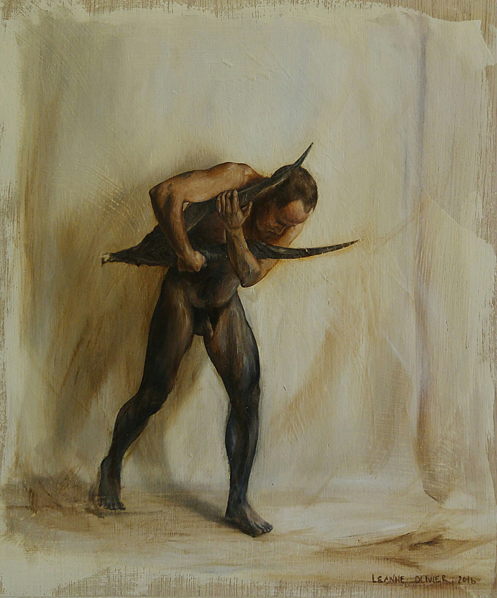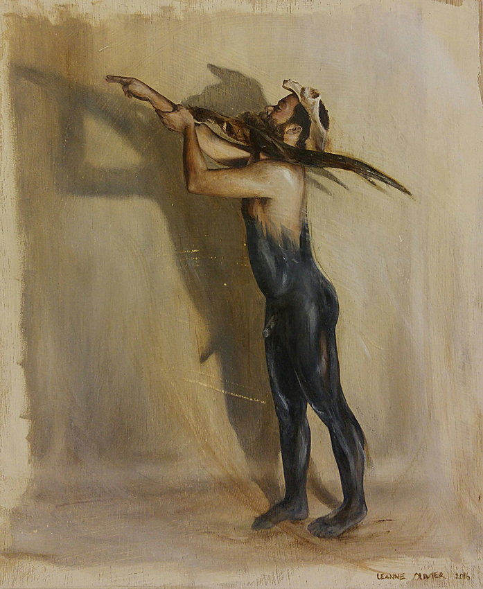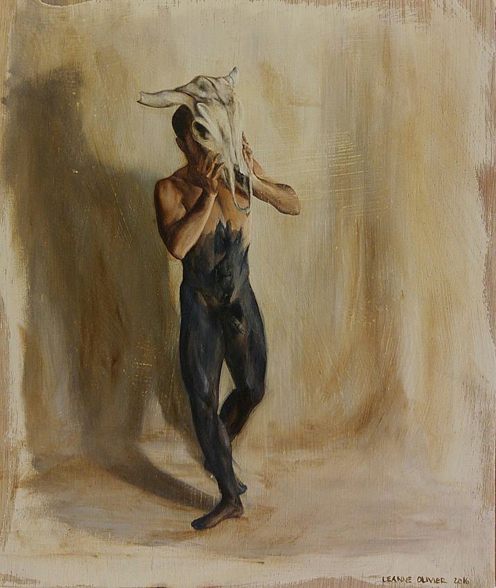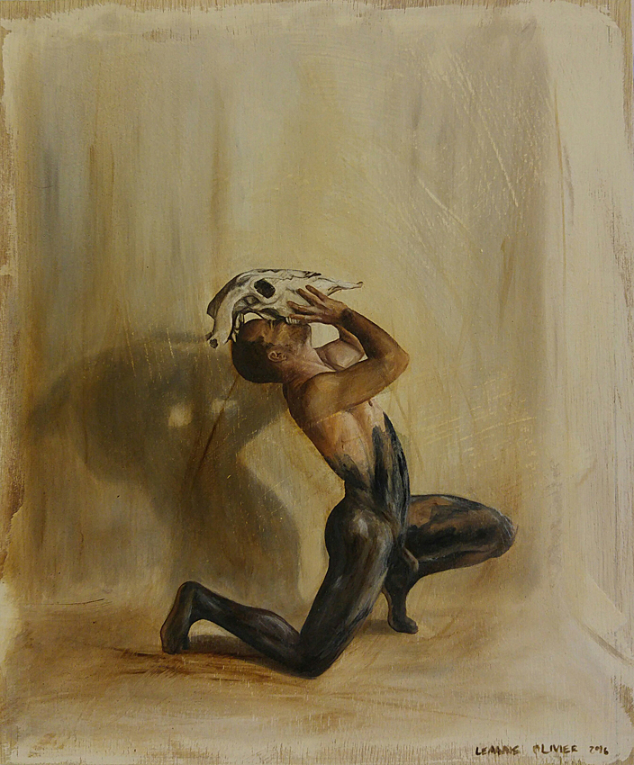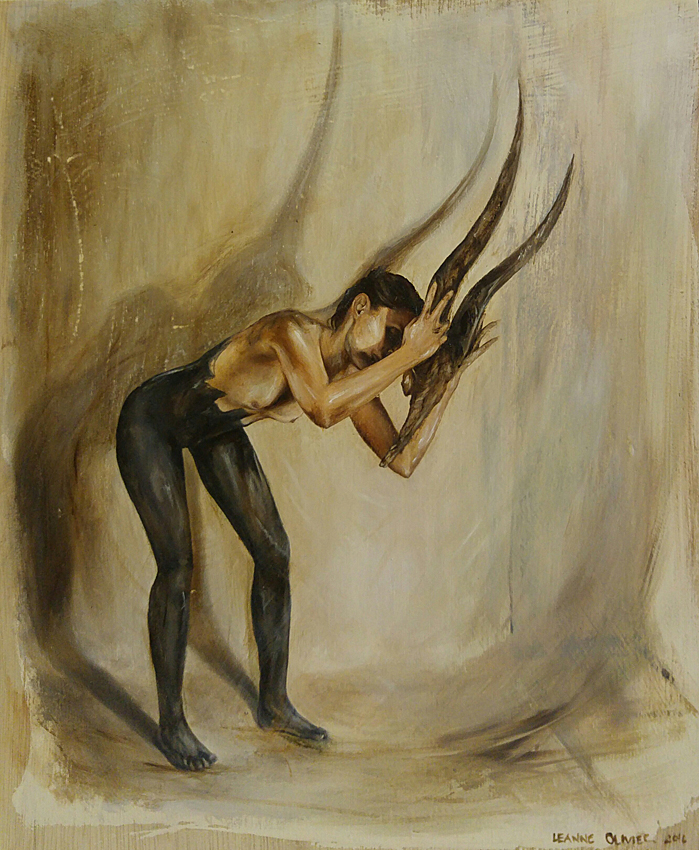 The line between human and animal (consciousness) becomes destabilized in my work. The clay slip (clay & water mixture) painted on the bodies and faces is used as a medium (mask) to unmask deeper realities. It goes beyond race, gender and the narrow instructions of what makes us human. It is the recognition or embodiment of the OTHER. By depicting the figures; half animal, half human, I try not only to extract the negative connotations which surround the ‘animalistic’ but also for a liberation to open a platform for a more embracing and enlightened relation to the complexity of all life.