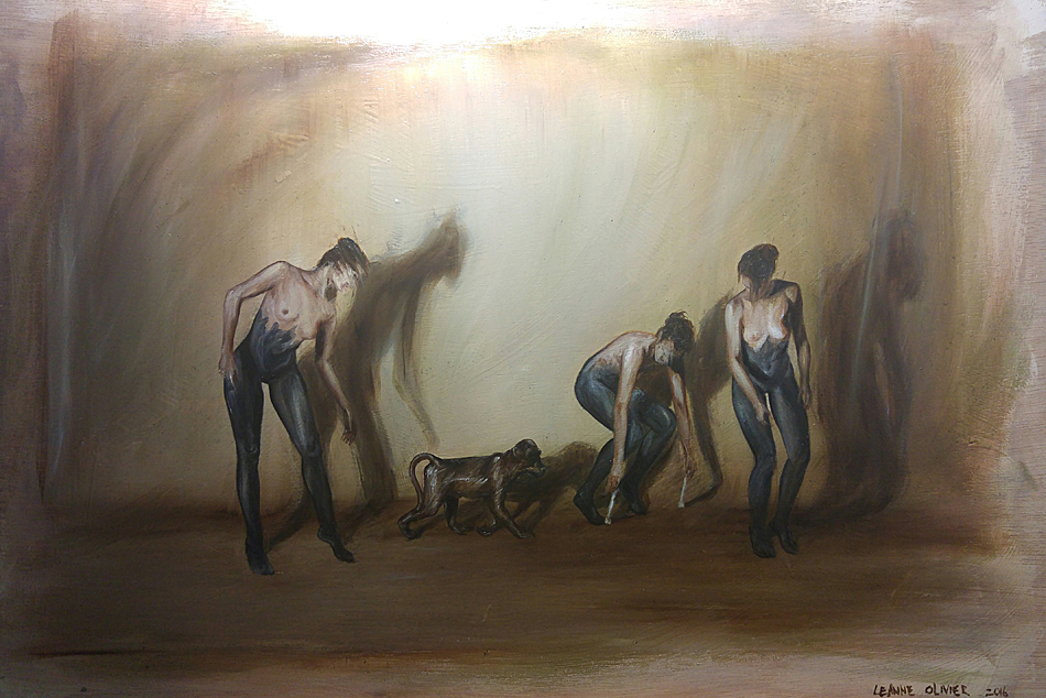 In this series of paintings, the title of works: Gedierte, Gedrog and Gedaante is not used as a measuring tool or a means of affirming our humanness in relation to animals. It is rather used in light of questioning and reflecting on our supposed superiority in the “great chain of being, positioning ourselves as securely as possible between beast and divinity. Not a God, to be sure, but thankfully not an animal.” (L. McCullough. 2011:55)