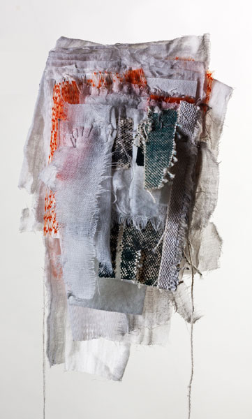 In this project, I have engaged with this conception of melancholia as a generative mental and emotional state. In an effort to visually and materially translate the inner experience of melancholia in a physical form, the materiality of this body of work hinges on the intuitive selection of mainly found materials that, through their abject qualities, embody my own experience of melancholia. This material interpretation of melancholia involves the dense layering of canvas, in different weights, placed close together and bound by a mixture of glue, paint and detritus swept up off the studio floor, such as hair, broken feathers, dust, ash, small found materials and other 'muck'. This layering of abject material upon abject material renders dense, yet nuanced forms that are compelling in that they are imbued with, not only darkness and weight but also a contradictory lightness and delicate complexity.