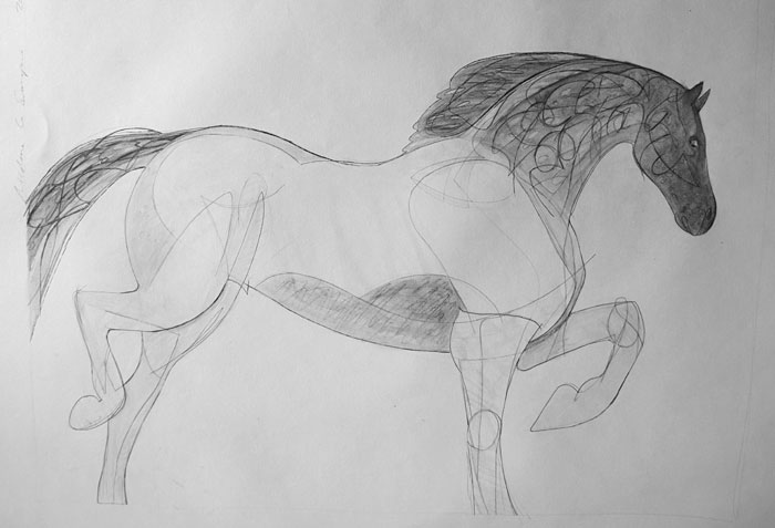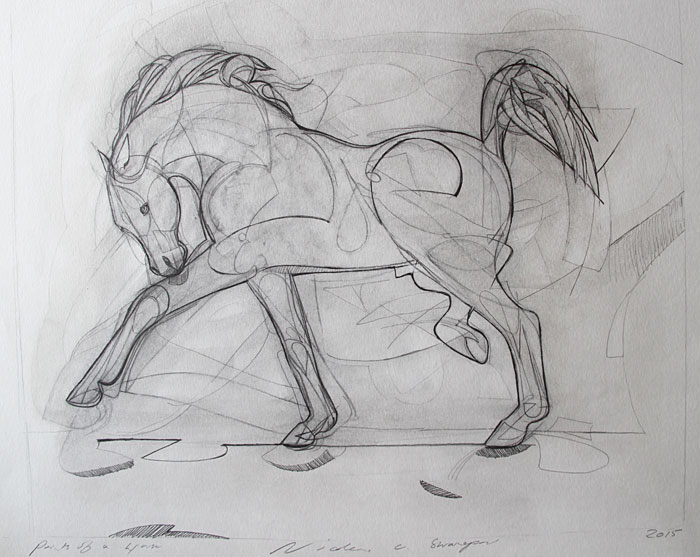 My work for this exhibition rather frivolously paints unencumbered, pretty ponies, rather than serious, embattled steeds.
