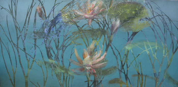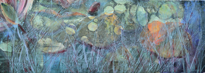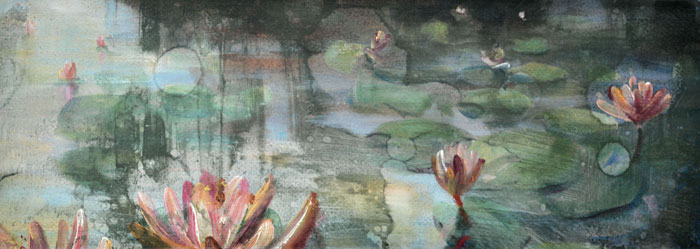 This series is a throwback to a waterlily and koi series I created in 2009.