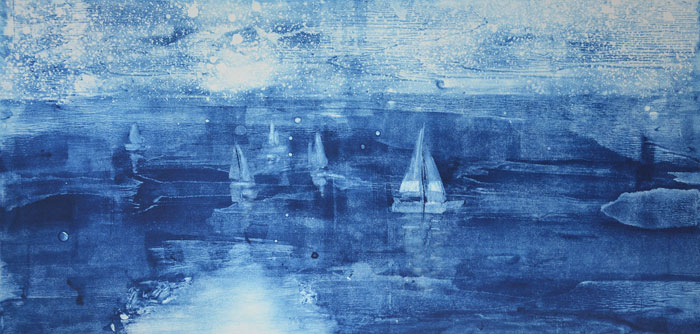 The indistinguishable, melancholic, ultramarine landscapes belong to everyone, creating a dynamic between the viewer and the subject that becomes much more intimate.