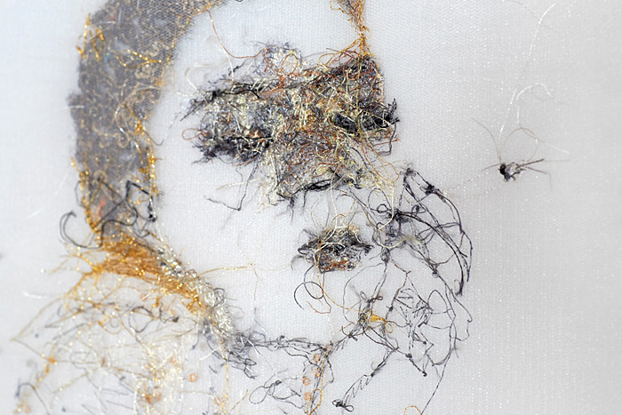 Hand-embroidered silk and metallic threads, Swarovski crystals, sequins, vintage sari, silken organza and tulle (84 x 69cm) (recto and verso)