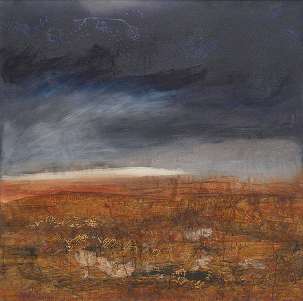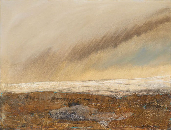 Ten Krooden states: "In the wilderness of the unsaid world, this place of wonder is a sanctuary for the wordless artist. This naturally occurring optical phenomenon bends light rays to display objects in the distance or the sky. In a realm where boundaries of reality blur, an enchanting mirage unfurls its intricate tapestry of illusion. Quiet imaginary blankets of mist cover sand and stone and water."