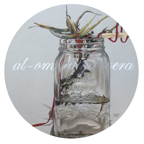 For the purposes of the above-mentioned show, the artist proposes a series of 5 round (approximately 40 cm in diameter) oil on board paintings, executed in a photorealist manner.