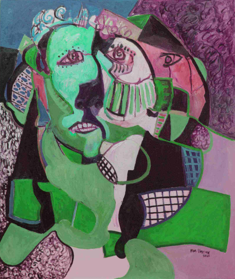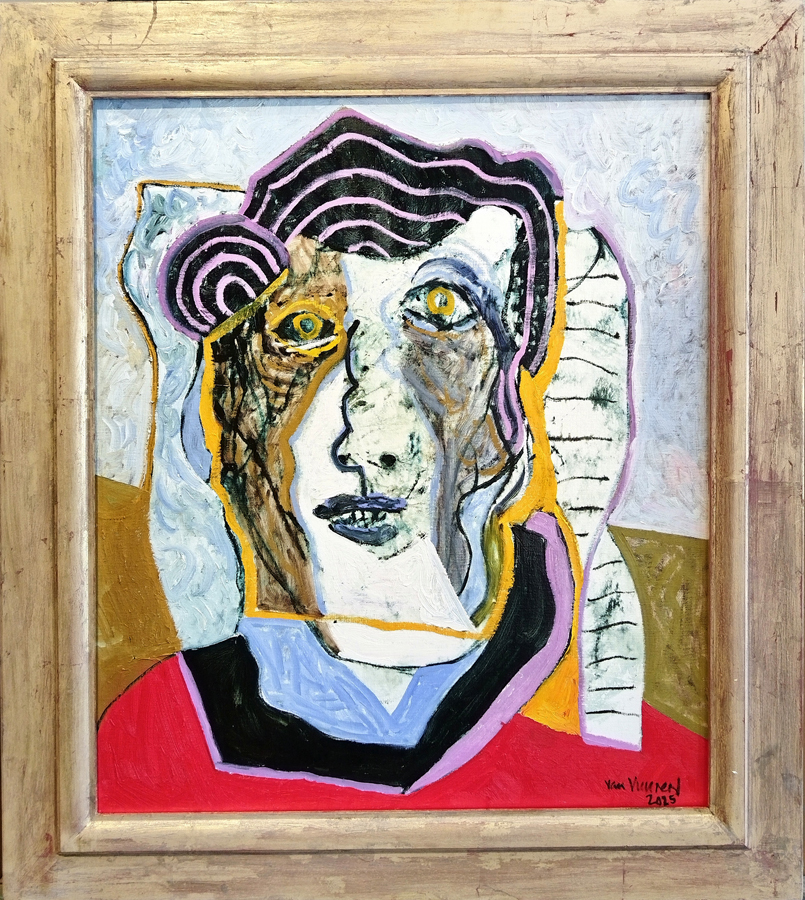 In their vibrancy of image, colour and texture, his paintings mirror energy and raw power. It is where he confronts the viewer with visions that will unsettle, intrigue and challenge. The vigorous application of paint with brush or knife, leaves a three-dimensional surface that breaks out of the safety net of flat colour to actively reach out and invade the spectators space. The urgency of line and dynamics of colour give the images a feeling of motion and activity which evolves into a stream of consciousness as the faces speak from their turbulent and passionate existence.