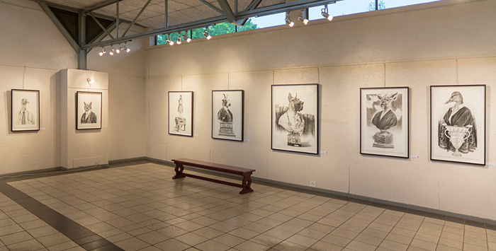 This show, entitled Posing on Pedestals, is focused on how job title and position are used and abused as a means of intimidation, status and power within the society in which we live. It is about how a careful construction of character and contrived projection of self is utilised for personal, political or social gain. The daily masquerade or parade has become common place and is explored humorously in this body of work.