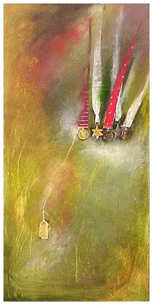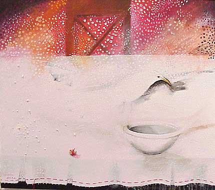 dusty nursery or a battlefield mirage. Even the embroidered delicacy of previous works
