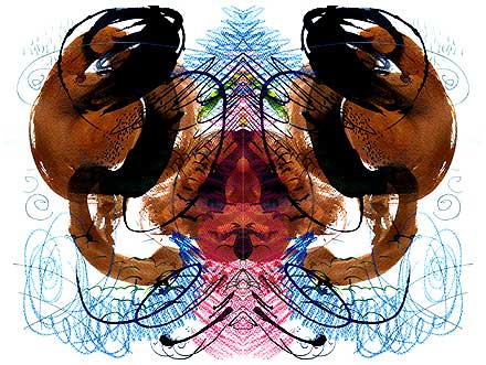Yet these kaleidoscopic emblems, reminiscent of Rorschach ink blots,