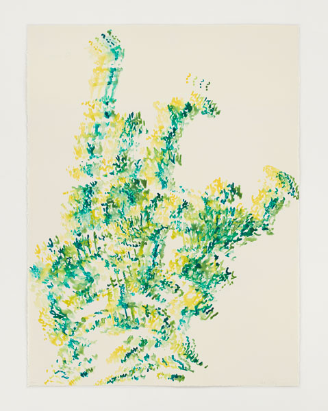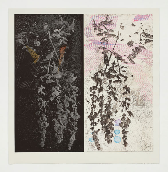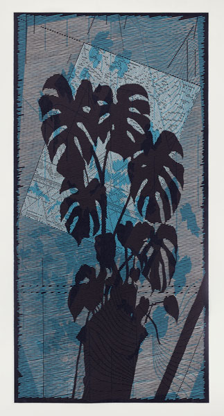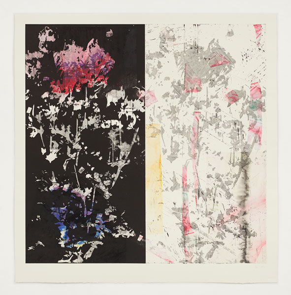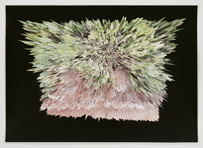 The artist’s garden becomes a site of inspiration for his imagery, often photographed and put through digital filters before referencing. The digital manipulation of these images generates new abstracted landscapes that are unfamiliar and somewhat dystopian. The process examines the tensions between the natural, organic forms of nature and the structures we impose on them. Images are dissected and collapsed into singular but complex platforms.