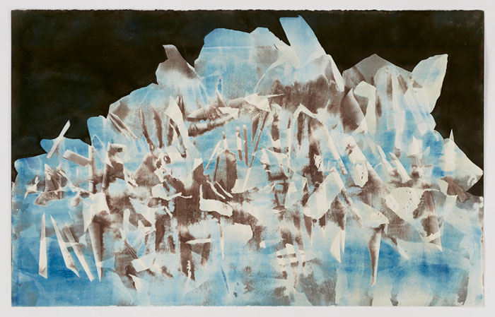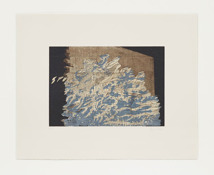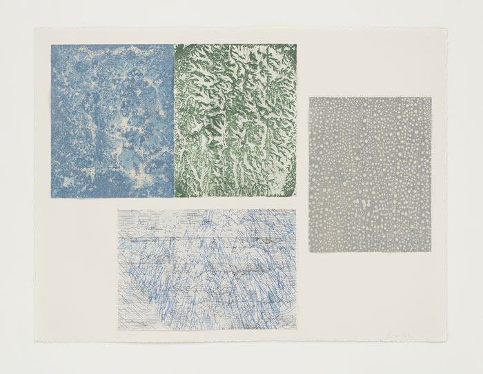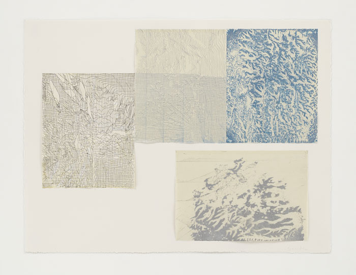 De Wet's etchings, relief prints, drawings and handmade paper works range from figurative forms of foliage and flora to microscopic planes, textures and geographical spaces.