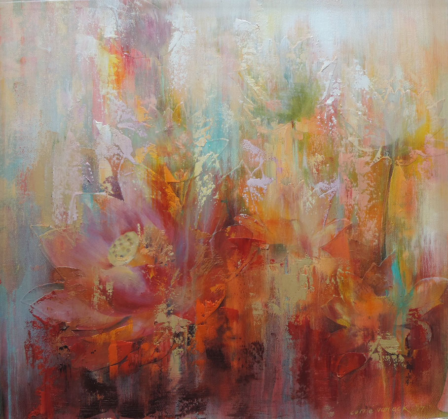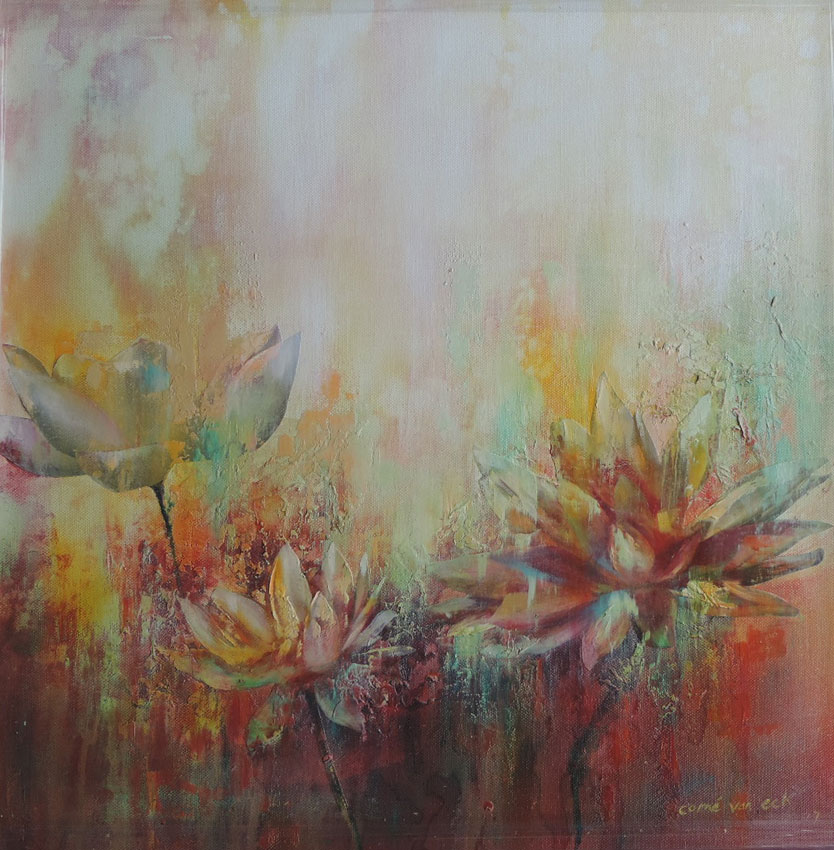 Corné describes her observations in a few words: vibrant, colourful, noisy, smelly, dazzling, vivid, garnish, but wonderful. She depicts Indian people and doors in the slums and surroundings, as well as the Lotus flower. Corné urges the viewer to connect with these images and to engage with them emotionally.