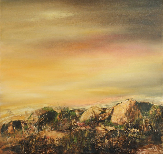 Corné's paintings reflect the South African scenery in all its moods: tranquil, majestic, austere and robust. "I am moved by the land’s vastness, its mountains, rock formations and domed skies."
