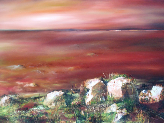 Corné van Eck transforms her landscape photographs into multi-media collages. She creates mindscapes by elaborating on portions of photographic material. Oils, combined with beeswax, bitumen, grass, bark and soil translates South African images into works of art. Each material is processed in such a way that they serve the composition as a whole.