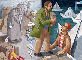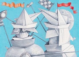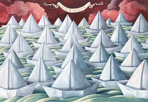 Paper Fleet: Myth and Memory Afloat - 2025Diek Grobler at Tertius Gallery Amsterdam. Opening 17 August 2025 I have been painting paper boats and paper jets for almost 40 years. They represent concepts and ideas; visible thoughts floating on the subconscious sea. As such, they can represent anything ? the little boat can be a symbol of migration, or it can be a symbol of colonisation. I used it as both in this exhibition: Both migration and colonisation are issues we are constantly confronted with. In some of the works the paper boats and jets combine, unfold, reconfigure themselves to become armour, sentinels and sirens. Tertius has been collecting my work since we first met in the 90?s, and therefore owns an overview of my career, in a sense. He is an incurable aesthete and romantic. He is also drawn to the unusual, the intriguing and the surreal. I think these are all characteristics which he finds in my work. I often find that he intuitively understands what a work is about. He has never asked me about the ?meaning? of a work, which is one of the most dreaded questions an artist ever have to answer. To have to explain an artwork is to annihilate it. More about the artist(s): art.co.za/diekgrobler |
