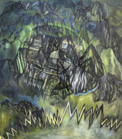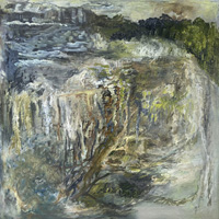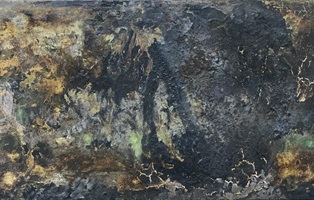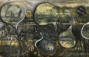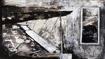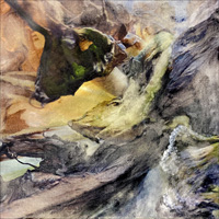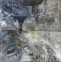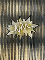 MOMENT - Elfriede Dreyer - 2025Elfriede Dreyer At at Tina Skukan Gallery"This body of work engages with Heidegger's concept of Dasein, which denotes human beings in their everydayness, intertwining subject, object, consciousness and world. I view communication as a crucial element in living meaningfully. In these pieces, imagery of sound waves refers to the piano's production of sound and symbolises the act of communicating voice. I interpret my piano and its resounding 'voice', its black-and-white notes (ebony and ivory), its outer appearance, inner harp, keyboard and mechanics as figure tropes of the architecture of life. Dialogue balloons ? a graphic convention from comic books, comic strips and cartoons ? evoke a stylised idiom of humanness. Some of these balloons comment on the human condition, reflecting on the highs and lows of experience and the necessity to 'pause' in the relentless passage of time. Dotted balloons suggest a soft whisper, while jagged balloons denote loud noise or a scream. Mountain imagery, particularly peaks, spiritually signifies a state of absolute consciousness. A technique of layered polyphony, employed in both physical and digital media in most works, alludes to consciousness across physical, mental and virtual worlds. Comic-book graphic lines in black ink are combined with expressive emotive paint. The play with onomatopoeia ? words that mimic the sounds they describe ?? explores the interplay between word, image and sound, as well as sound evoking both word and image. The Moment works build upon my 2023 Song of the philosopher series, which investigated the relationship of word and idea to image. In The piano, a previous 2024 series, my piano ? surviving the 2017 Knysna Great Fire ? served as the central motif, addressing themes of loss and recollection." |