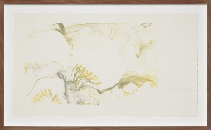 Artist:  Gwenneth Miller Title:  The Yeallowing Medium: Monoprint on Fabriano with pencil inscription Size:  380 x 670mm, Framed in African Teak Price on Request