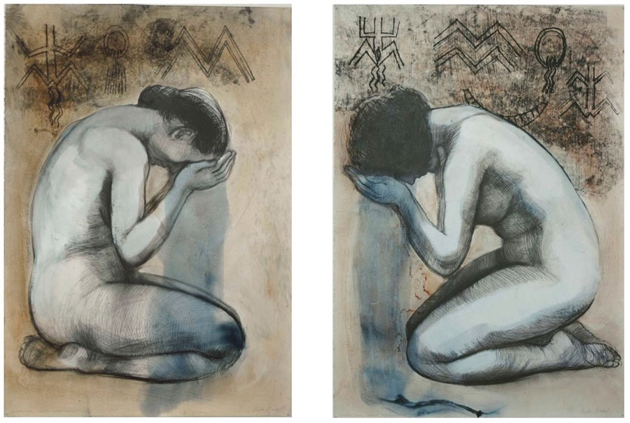 LIVING WATERS 1 & 2. 1996 (112 x 77cm) diptych/framed
