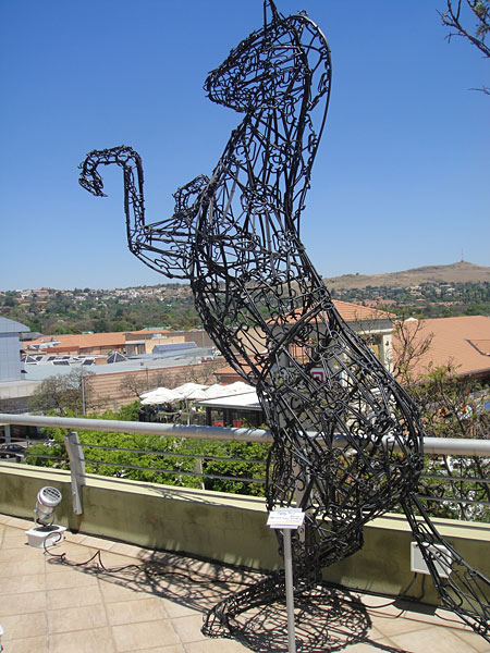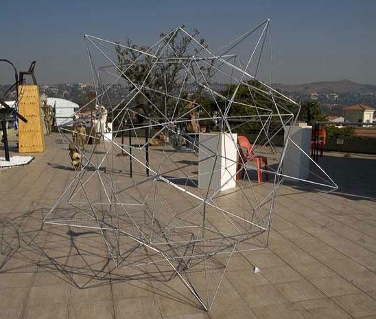 As both curator and artist, Froud's Rooftop exhibition sees large scale works that are visible from the street below. His coathanger Nissian-bakkie replica on the staircase rooftop reminds one of the toy cars one played with when one was a child. Froud's work reflects on the playful and childlike theme.