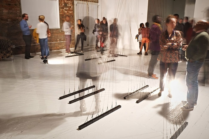 The unique soundscapes are recorded and collected with the local communities prior to each exhibition. Some of these memories, conversations and ambient sounds are heard raw, others processed into intricate musical tones.