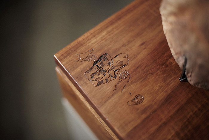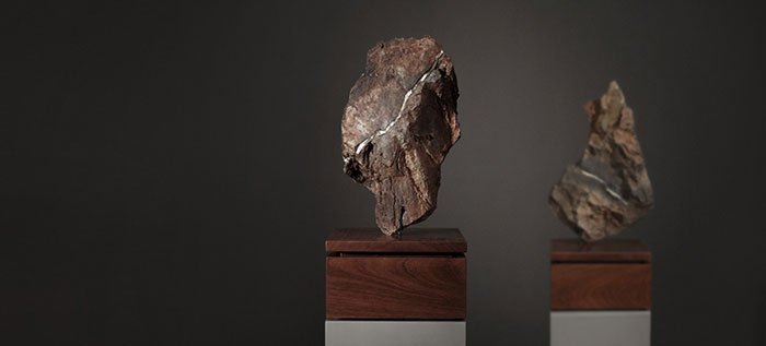 In late 2015 Burchell began work on a triptych made from ancient rocks found in three prehistoric, geographic locations: the Cradle of Humankind, the Great Karoo, and the Vredefort Dome. This triptych is formed into three collections named after their geographic locations. Burchell chose these sites as they each represent a moment of time wherein the world shifted: they are small and delicate markers of immutable change in our ancient history.
