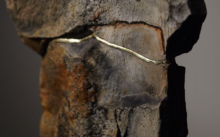 Songsmith (The Great Karoo) represents a moment in time 250 million years ago when an extinction level event occurred. This left behind a ghost-like mark on the earth visible in The Great Karoo. Along this extinction horizon of fossilized volcanic ash, Burchell walked like a later day pilgrim searching for fractured rocks.