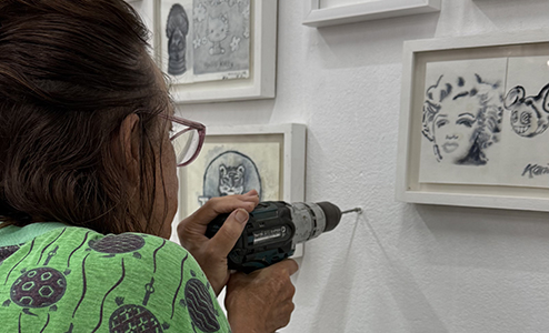 In this assemblage of works, the artist works across various mediums: drawing, watercolour, ceramics and installation.