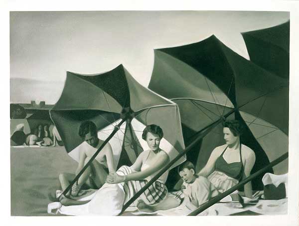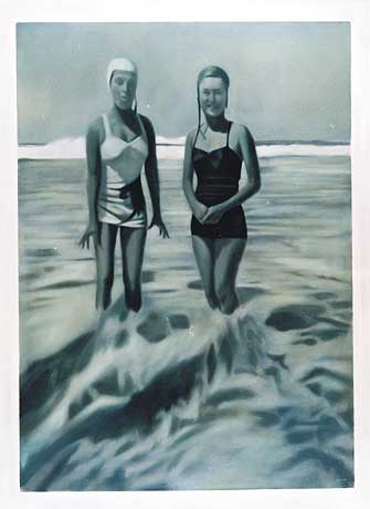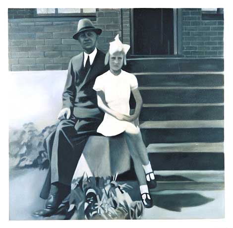 These paintings form part of an installation of twenty one paintings completed in 2001. The paintings are based on photographs of my family, taken from the 1940s to the 1960s, mainly in Johannesburg and on vacation. Family photographs, by their very familiarity, often transcend the personal in that they evoke a sense of shared experience of a specific time and place (in this case mainly of white, middle-class families of that era). Apart from the fact that a certain era may be recognizable to the viewer, the photographs are also similar, in the poses, compositions and conventions, to those in every other photo album.