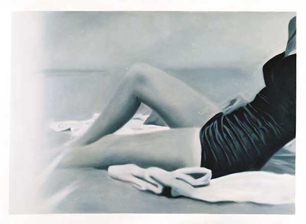 Painting is as much the subject matter of these works as the chosen iconography. The surface itself – the ambiguity of the ‘trace of the real’ produced by the camera and the ‘reality’ of the painted canvas – becomes both the ‘site’ and the ‘sight’ of a physical engagement with personal memories. Illusionistic painting effectively conceals the painted mark – the usual evidence of the painter’s presence. It is the initial absence of this presence, and the resultant difficulty to define the work, which, I suggest, is enigmatic and opens the space for viewer projection.