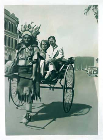 Writing on one of the paintings of a photograph taken by a street photographer in Johannesburg (Joburg ArtCity project), Mike Alfred (Sunday Times Lifestyle, September 2002) comments: