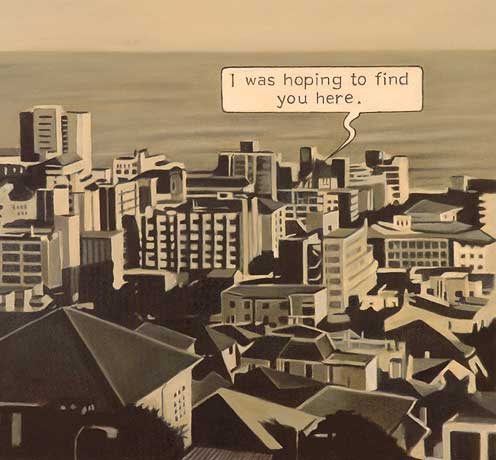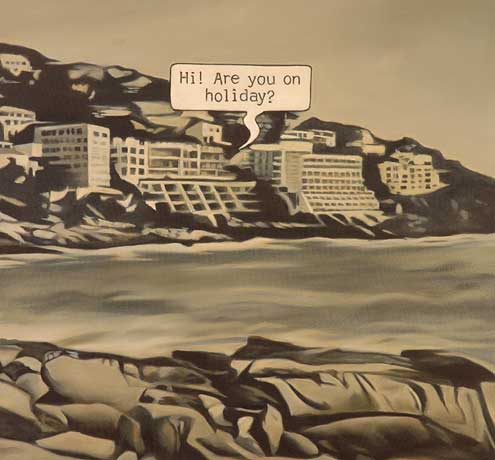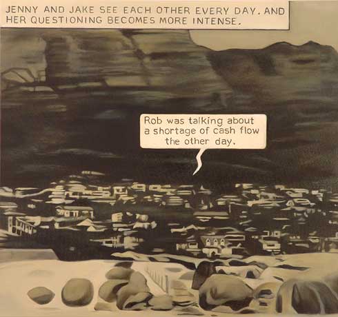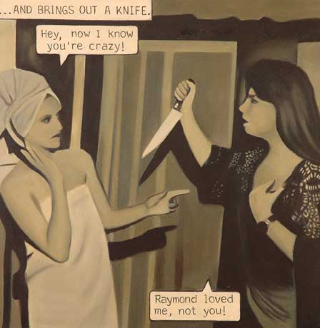 The translation of the photo-frames into oil paint – traditionally a medium associated with ‘high’ art – comments on the peripheral relationship of popular culture to so-called ‘high art’. Preller does this in two ways. Firstly her subject matter is derived from pulp photo-magazines which, at the very least, could be called a marginalized genre, and secondly, the translation of these frames into the medium of oil paint destabilizes the relationship between ‘high’ and ‘low’ or ‘centre’ and ‘periphery’.