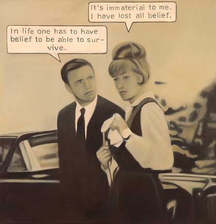 The works on this exhibition consist of paintings of frames from popular black and white photo-magazines published from approximately the 1960s to the 1980s. The paintings are exact reproductions of images from these magazines which, through the translation into oil on canvas, are placed in a new context and given a new ‘visibility’.