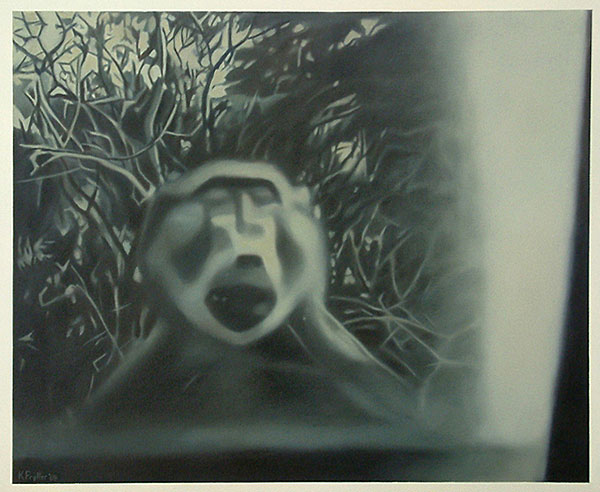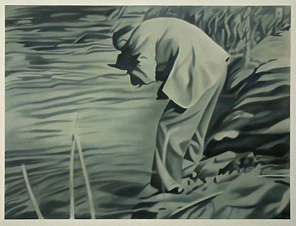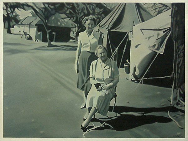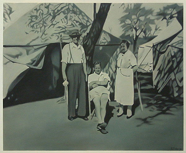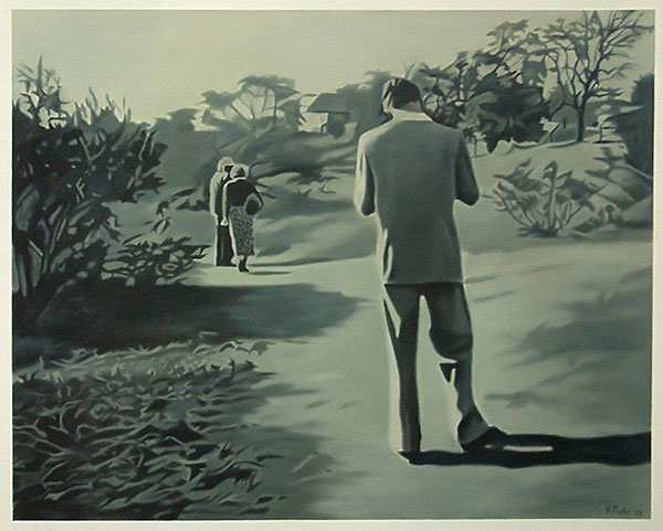 Continuing my exploration of family snapshots of a specific era, the paintings are based on photographs taken in the Kruger National Park during the late 1950s. Reproduced and enlarged in oil on canvas, the peculiarities of small faded snapshots are emphasized and enhanced. As snapshots, the images are indistinguishable from thousands of others; as paintings, they possess a particular affective quality which retains our gaze.