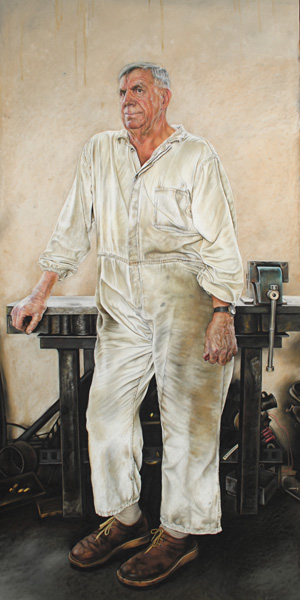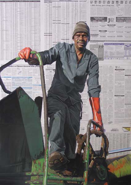 Her approach (specifically in the pastel drawings) transcends conventional notions of realistic portraiture, rendering her work a unique quality. Her drawings capture the essence of these workers at work; exploring their relation to the work they are employed to do.