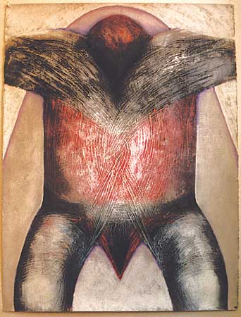 'CEREMONIAL FIGURES' 1985 Mixed media on paper 97 x 112cm