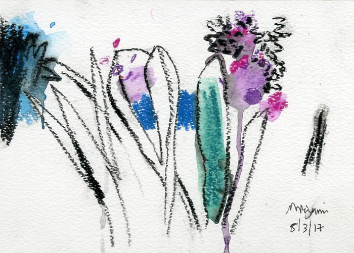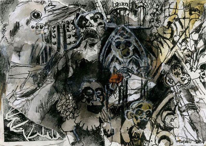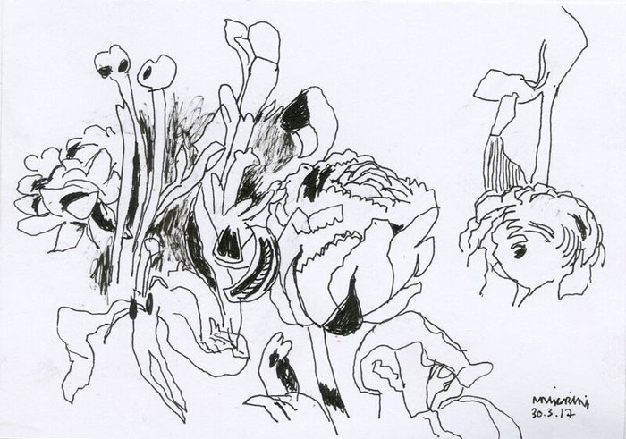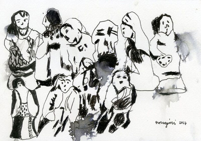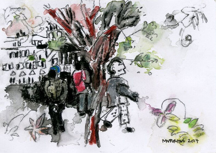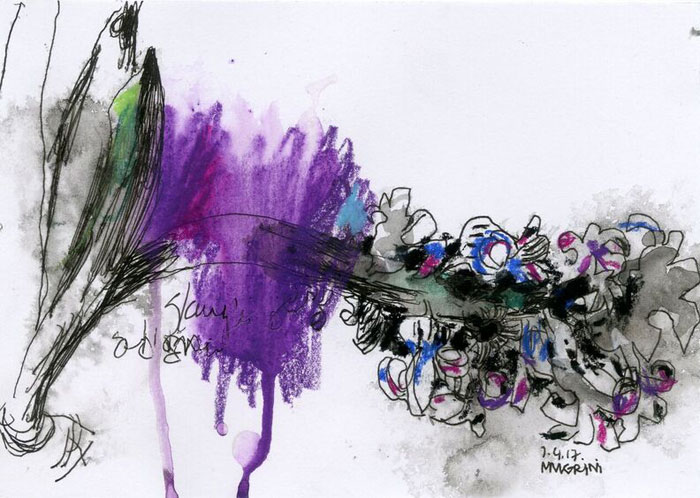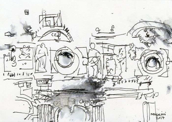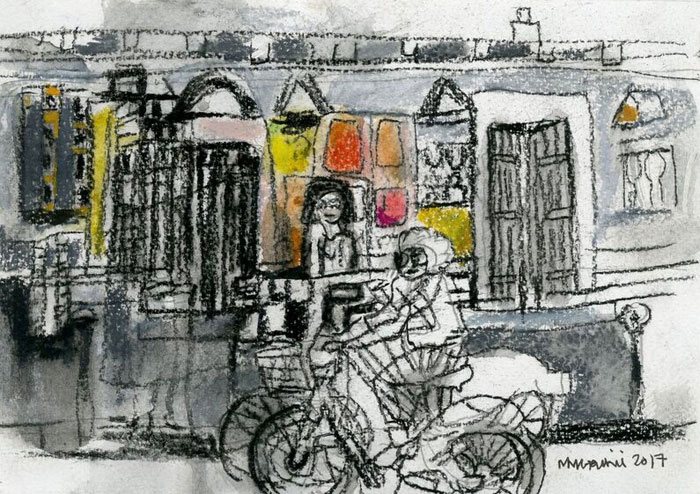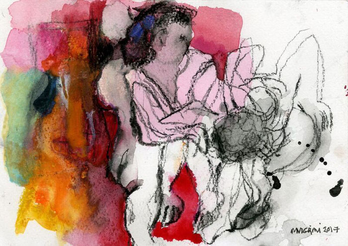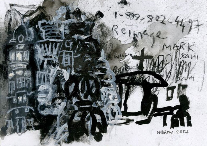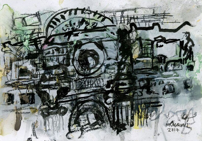 This exhibition is a collection of impressions, doodles, work sketches and paintings inspired by Michele Nigrini’s two month residency at the Cite des Arts in Paris. The residency offered her a time of research and reflection, as well as the experience of life in a different location and culture. Paris is an almost overwhelming feast of museums and galleries, buildings, bicycles, graffiti and gardens, flea markets, people and endless sign posts. Nigrini inhaled these inspirations, and used them to explore different styles, different mediums, different influences, and that which flows from it.