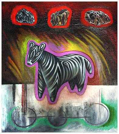 emotional impact. In clear, vivid colours, he depicts the fragmented elements of the African