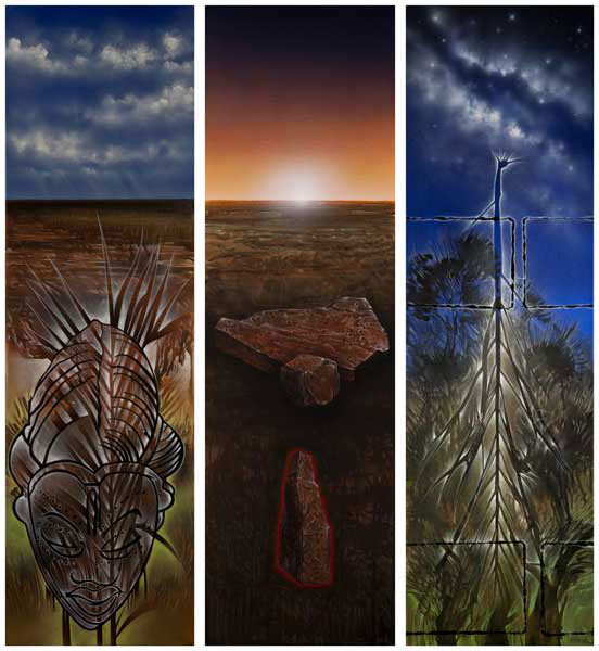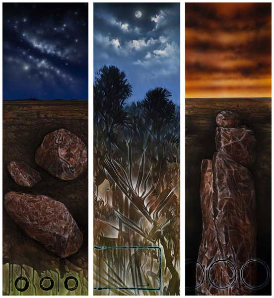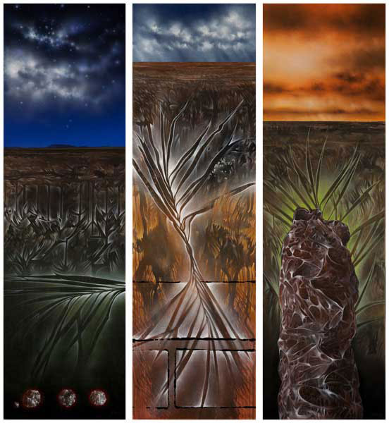 Although painted from specific areas in the landscape throughout the country, no specific titles are given. The work is simply titled “your space”. The observer is invited to make the space their own. There is a paradigm shift occurring from “my place in this world” to “my world in this place”