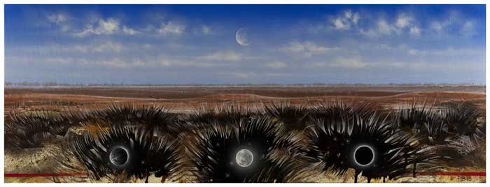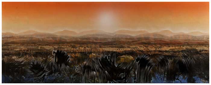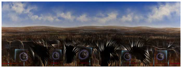 My paintings are not just Landscapes. They transcend into open-ended memory and history and are open-ended in nature. Here they may even be referred to as wallscapes, interior decorative pieces which stand as testimony to the fragments of identity and history.
