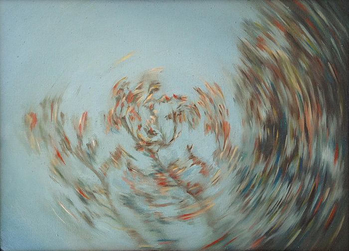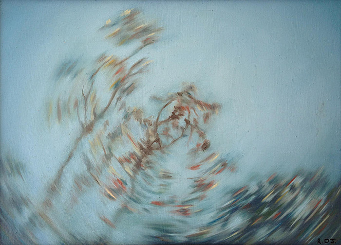 An Interlude series I - IXAn Interlude comprised the first 9 of a series of 21 paintings and was part of the Lizamore & Associates booth at the 2014 Turbine Art Fair. "I found it interesting how curious people have been about which came first in this production - the paintings or the video installation. It was in fact the video installation, a collaborative effort with my cinematographer partner, Thomas Pretorius, aimed at creating an immersive experience. The video involved a customised rotating camera mount, with the camera mounted on a 3 metre long motion-controlled slider rig so that it moved in a spiral pattern past tree branches and toward an endless sky. 1,459 Framed stills were captured and stitched together into a 4-minute video to generate the experience of “winding and unwinding". | |